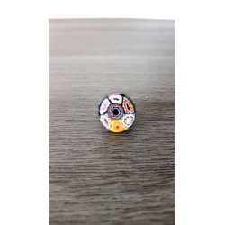 Bague en verre fusing millefiori et acier inoxydable. Motif fleuri, multicolores.