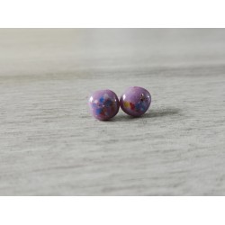 Boucles d'oreilles violette en verre fusing sur acier inoxydable.