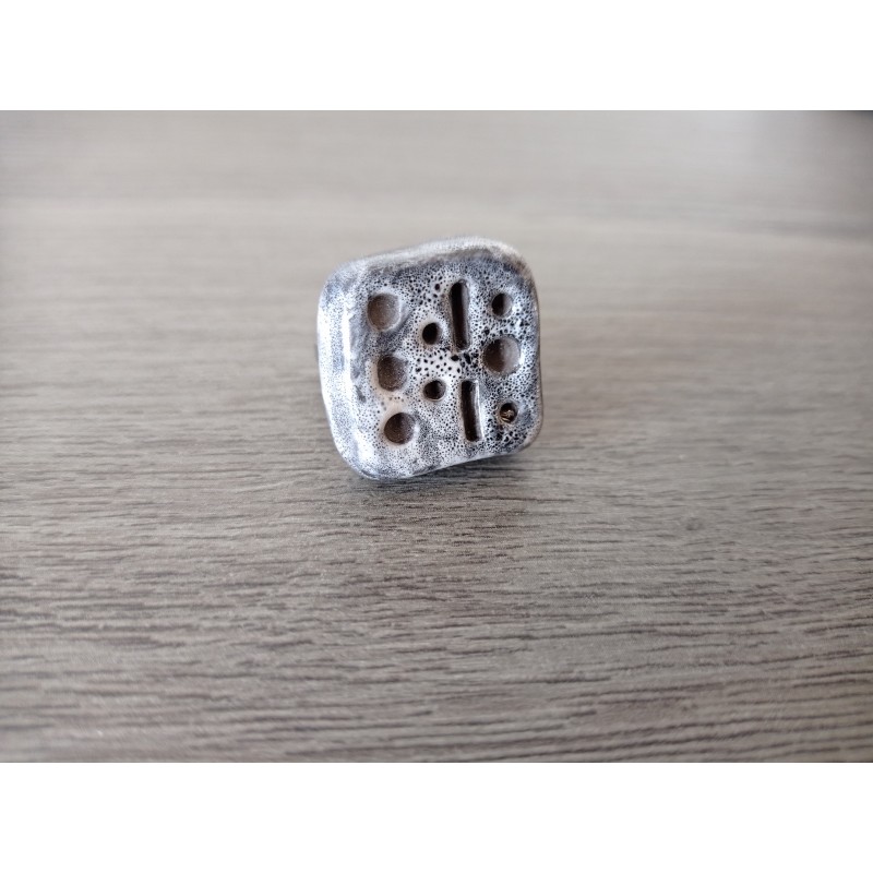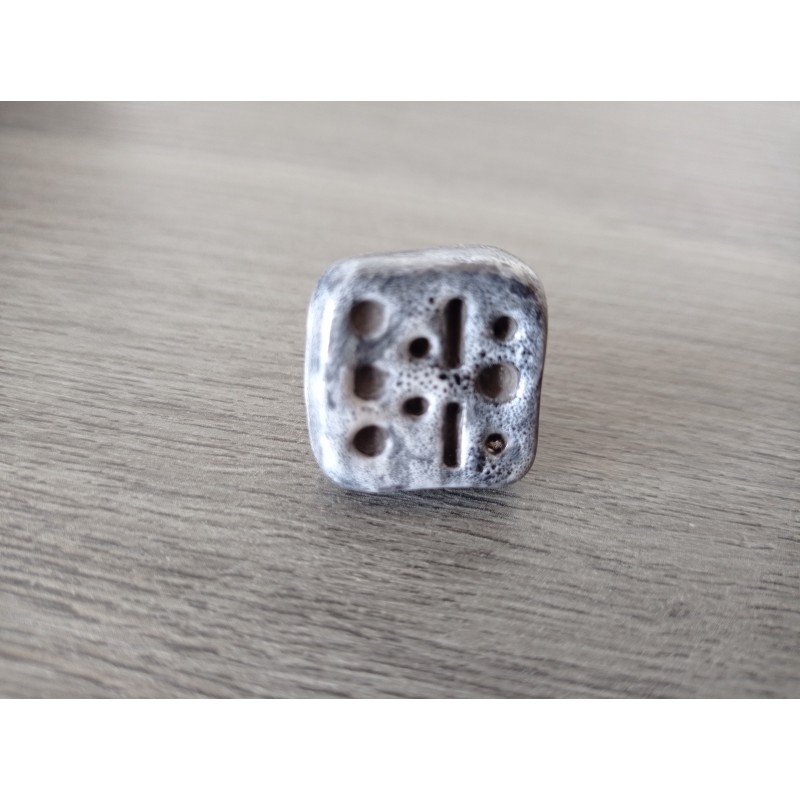 Bague en faïence brune (céramique) recouverte d'émail blanc et cuite à 1000 degrés.