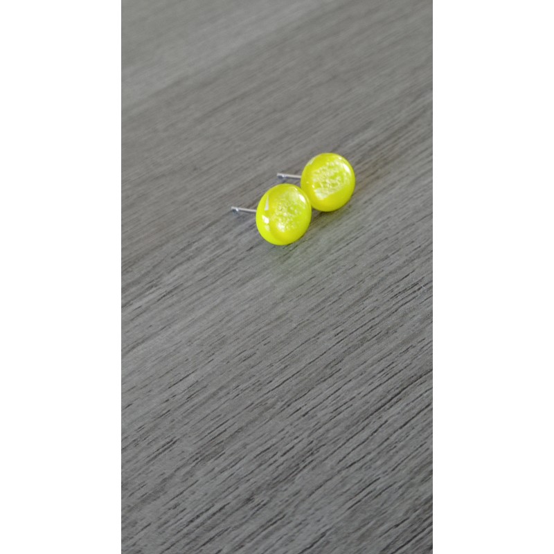 Boucles d'oreilles puce verre fusing dichroic jaune vert