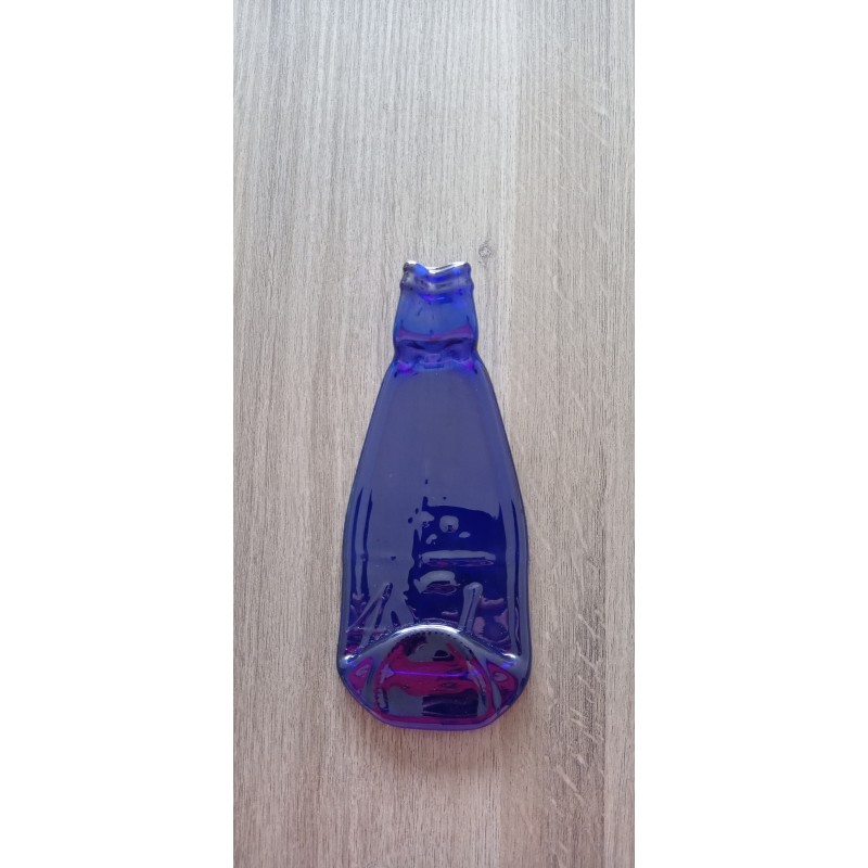 Décoration, repose cuillère bleu, plat en petite bouteille de verre fondue, recyclé. Idéal pour ne pas salir votre plan de travail ou amuses bouches et saucissons. Peut également servir de vide poche, porte bougies ou porte savon.