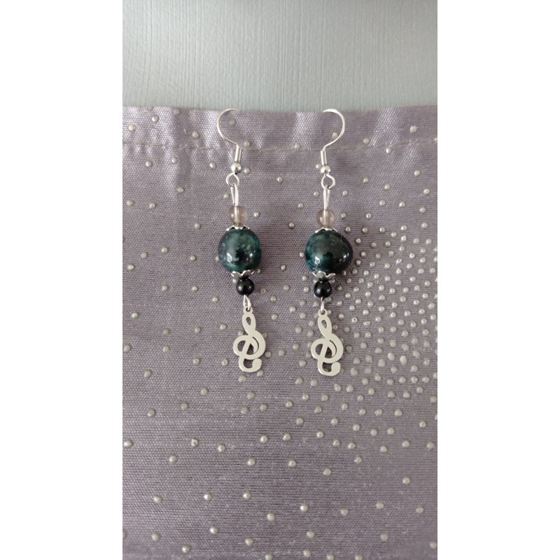 Boucles d'oreilles céramique noir clefs de sol acier inoxydable faïence