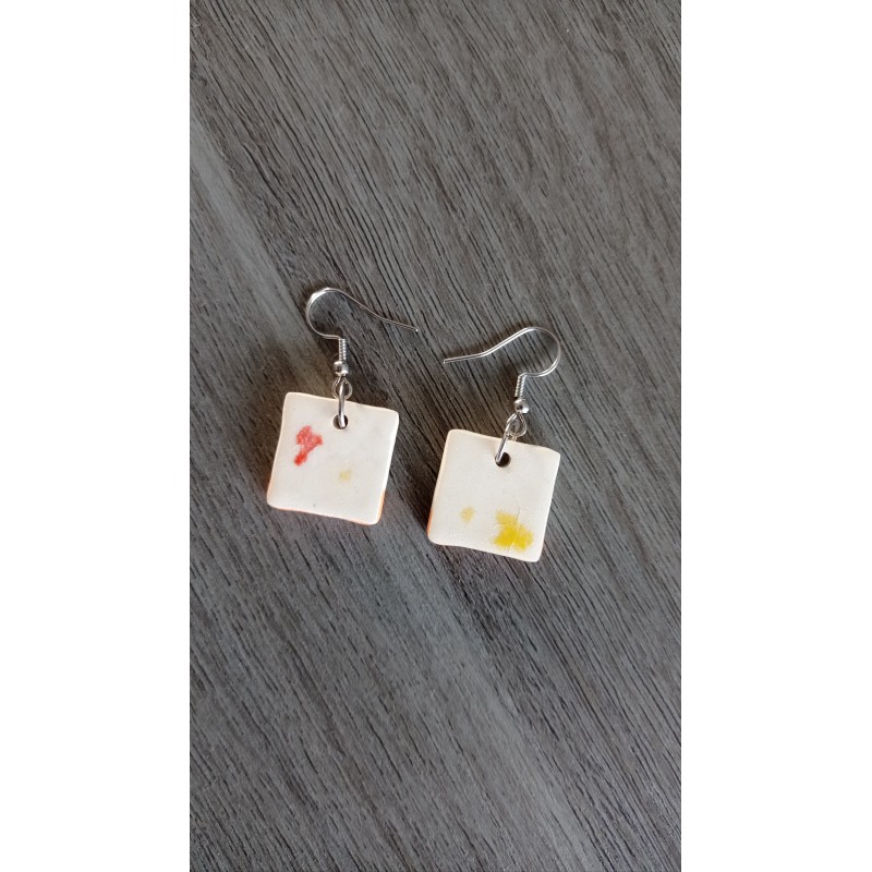 Boucles d'oreilles en faïence blanche, céramique émaillé orange et crème.