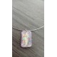 Pendentif rose en verre fusing dichroique et acier inoxydable.