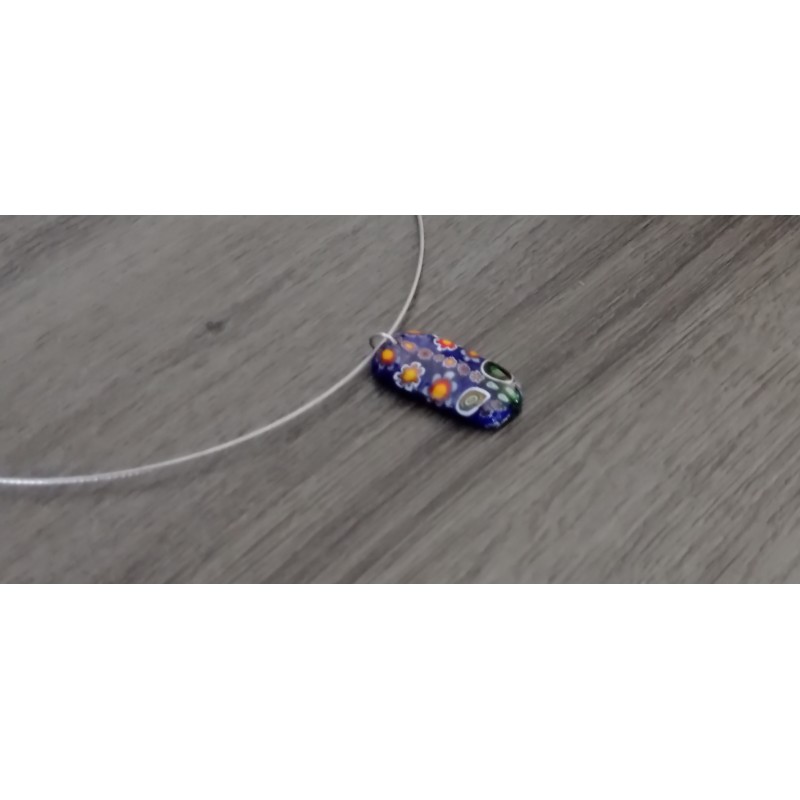 Pendentif mode millefiori bleu foncé en verre fusing fleuri.