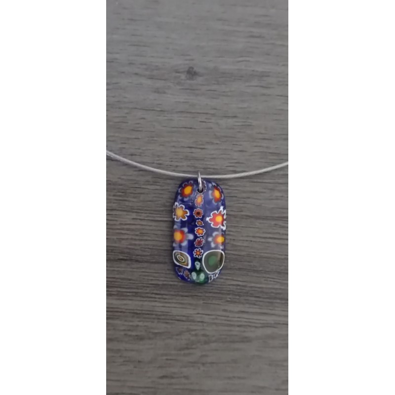 Pendentif femme en verre type millefiori fleurs fusionnés à 800 degrés.