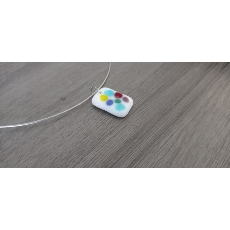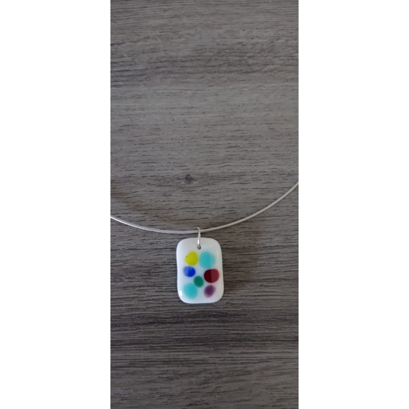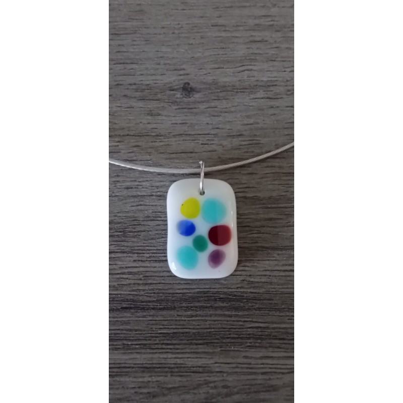 Pendentif blanc et multicolor en verre fusing création artisanale vendée
