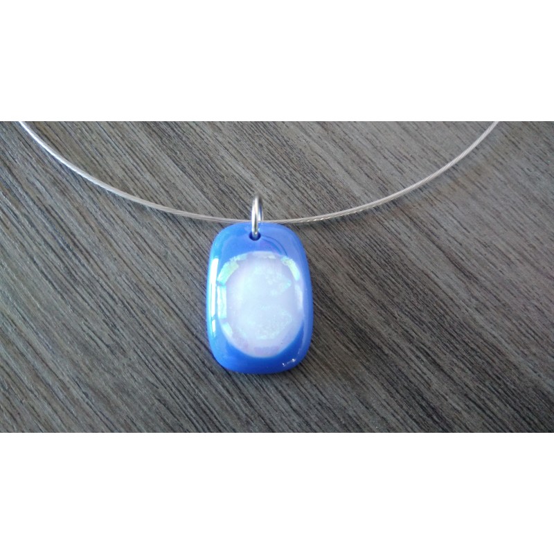 Pendentif bleu et blanc avec effet dichroic en verre fusing création artisanale vendée