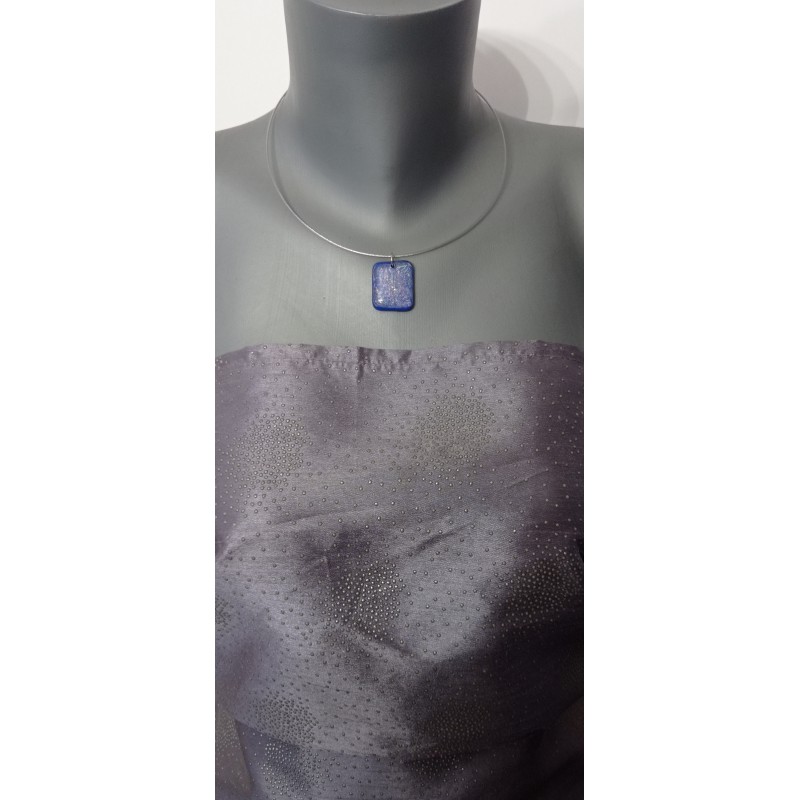 Pendentif bleu en verre dichroic à reflet pailleté, irise fusionné au four à 800 degrés et chaine d'acier inoxydable.