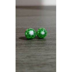 Boucles d'oreilles fleurs bleu et rouge en verre fusing millefiori et acier inoxydable.