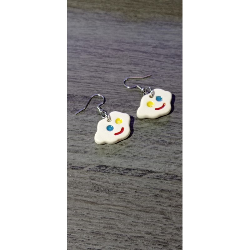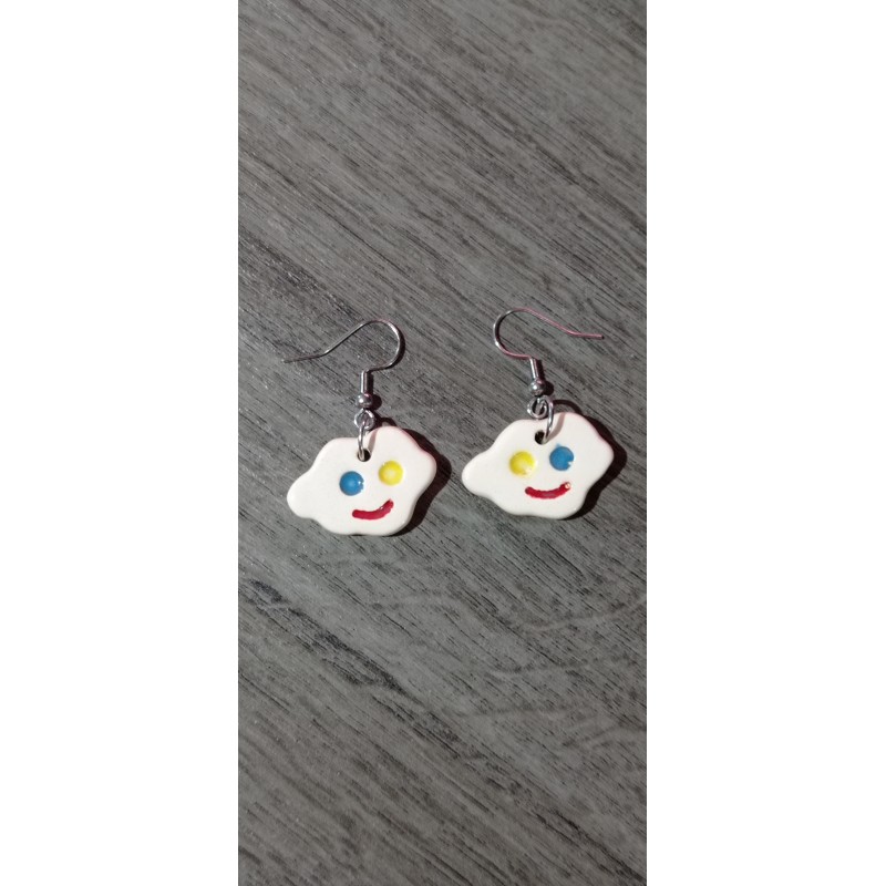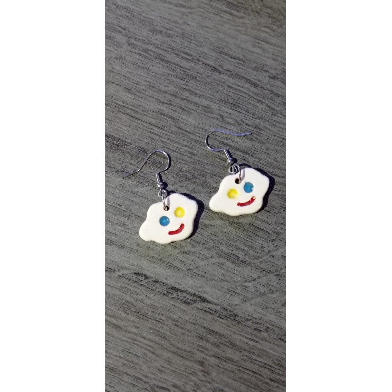 White ceramic earrings (white earthenware) baked in 1000 degrees. White rounds associated with stainless steel flowers.
