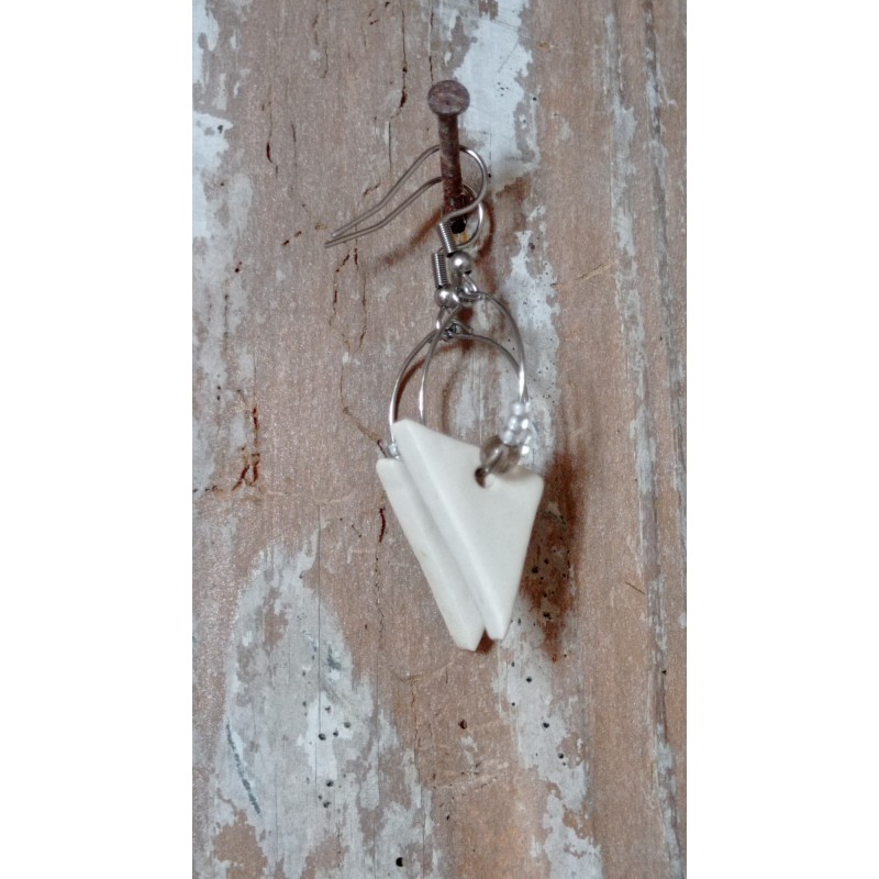Black and white ceramic triangular earrings (white earth) baked at 1000 degrees.