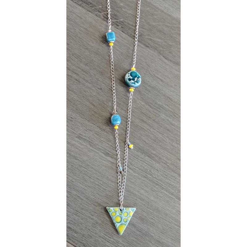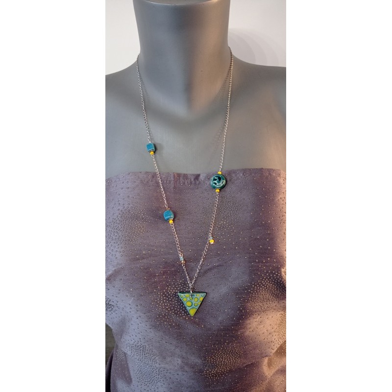 • Description: Nice yellow and turquoise jumper. Alliance of various pieces of earthenware.