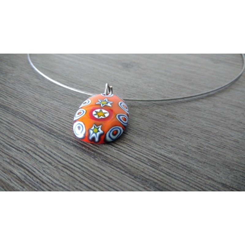 Glass pendant fusing millefiori red orange designer jewelry vendée
