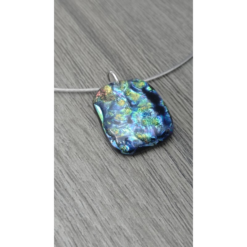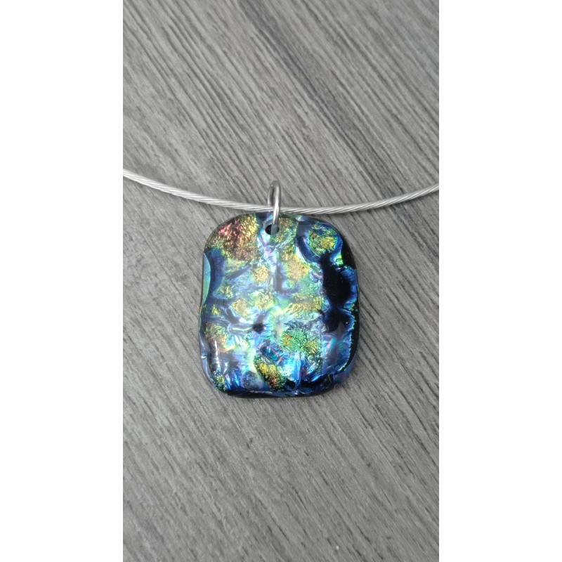 Black pendant dichroic effect in fusing glass craft creation vendée