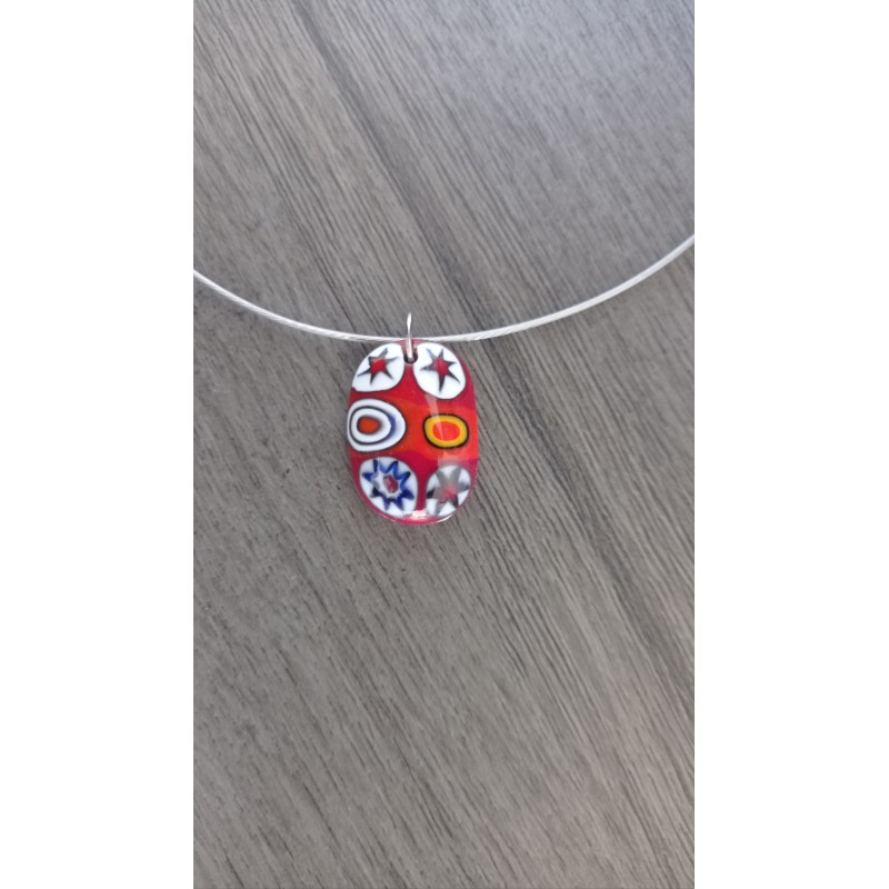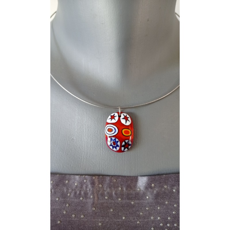 Glass pendant fusing millefiori red orange designer jewelry vendée
