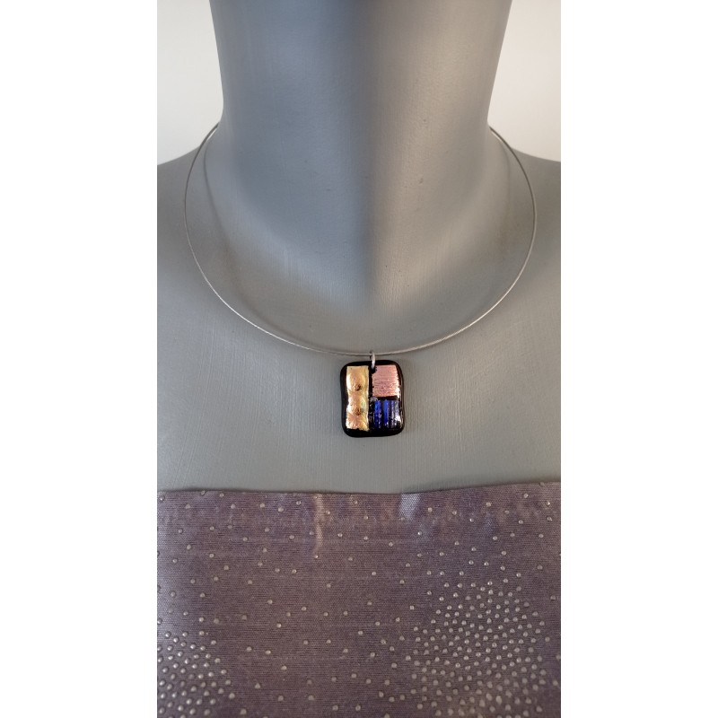 Black pendant dichroic effect in fusing glass craft creation vendée
