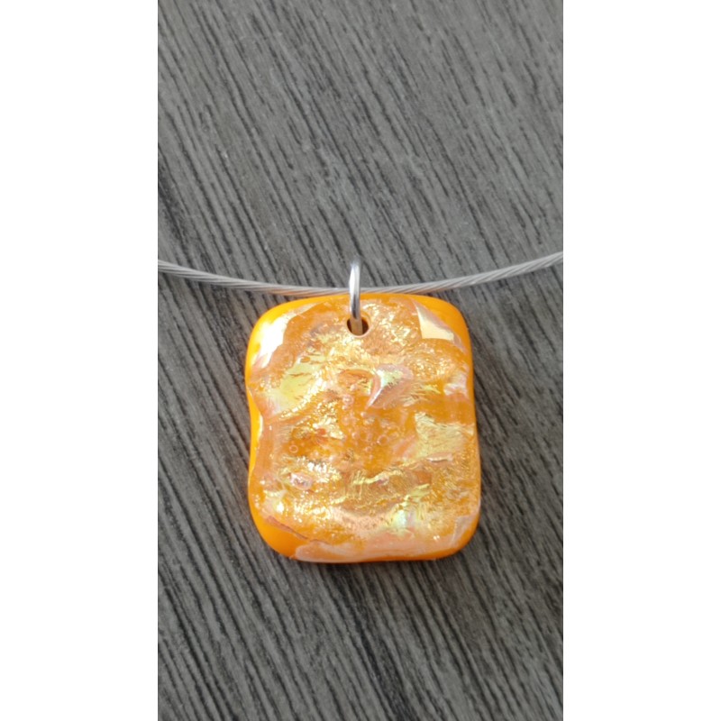 Path: > > > Transparent red pendant dichroic orange pink fusing glass creation handcrafted vendée