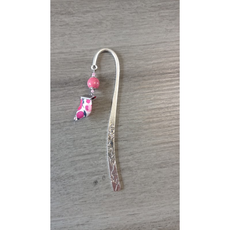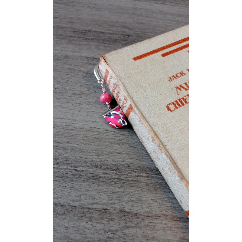 Marque-page composé d'une perle rose de céramique, agrémenté d'un ruban. Perles modelés, coloré à l'émail puis cuite à 1000 degrés.