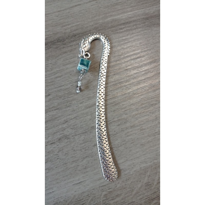 Marque-page composé d'une perle turquoise de céramique, faïence. Perles modelé, coloré à l'émail puis cuite à 1000 degrés.