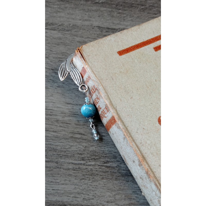 Bookmark composed of a turquoise pearl of ceramic, earthenware. Beads modeled, colored with enamel and then cooked to 1000 degrees.