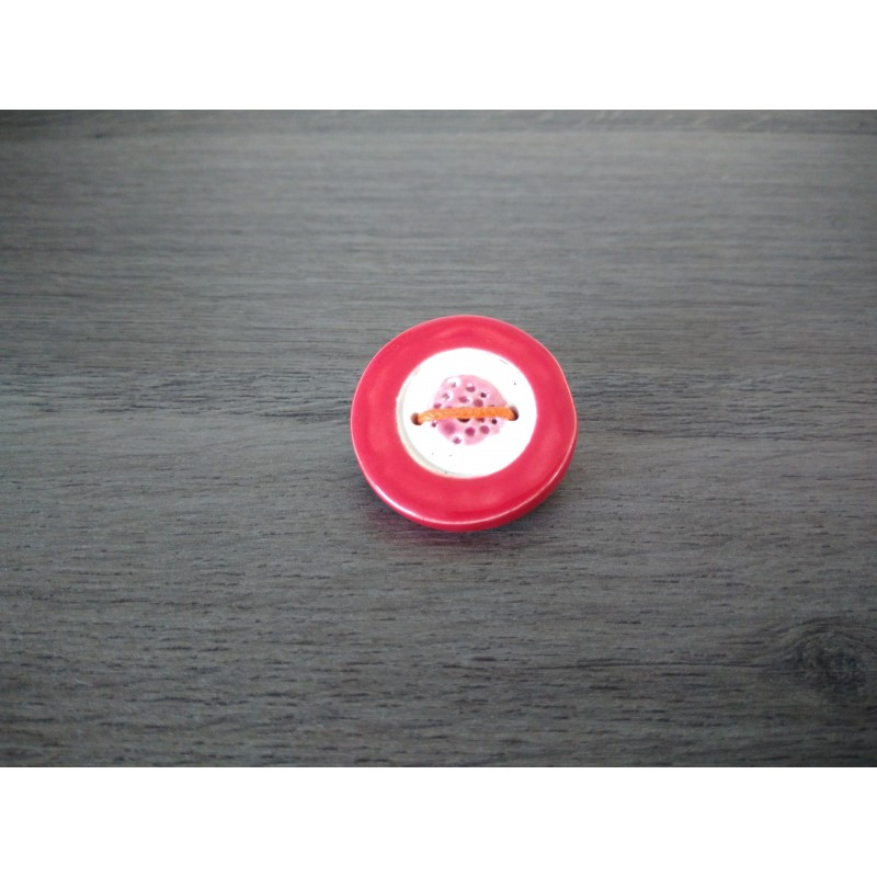 Color red and white with a hint of pink for this ceramic brooch. Mounted on a stainless steel holder, which will avoid allergies and allow the duration in time of your jewel.