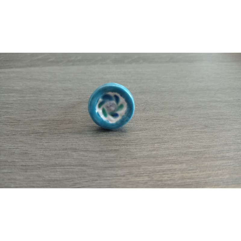 White earthenware ring (ceramic) covered with enamel and cooked at 1000 degrees. Then comes a thin layer of molten glass of various colors that intertwine. Pretty little cracks for a nice effect.